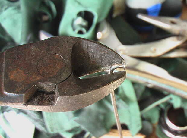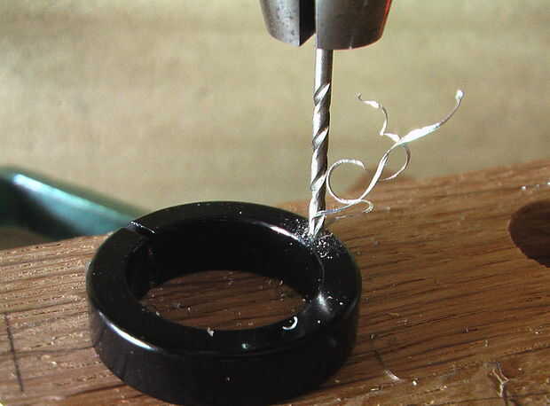 Así que sí, como en las fotos, perfore un orificio de 2 mm en el lock-ons para recibir los extremos de los radios. Taladre los orificios casi completamente a través del, pero no del todo - así que el rayo no se deslizará hacia fuera. El hilo de radios auto aprovecha un agujero de 2 mm muy bien.