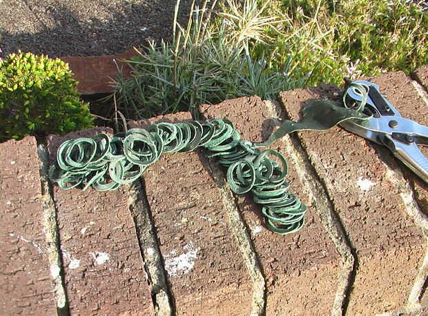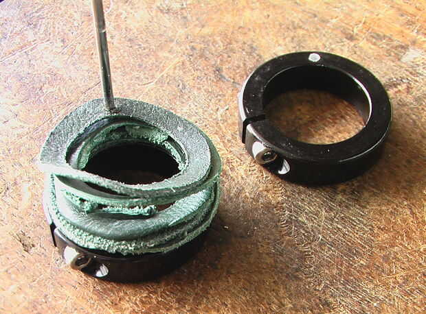 Ahora tenemos que hacer un agujerito de 2mm en todos los rizos de cuero, para que ellos se 'thread' en el habla. Para esto usé una herramienta del sacador de agujero real, utilizada para hacer agujeros en cinturones de cuero y similares. Si no tienes uno,