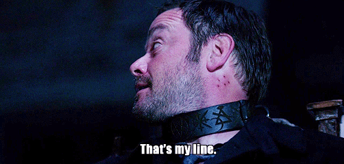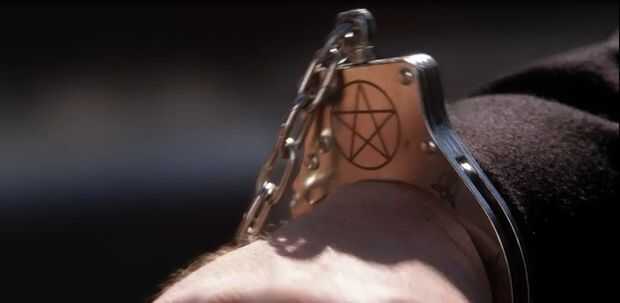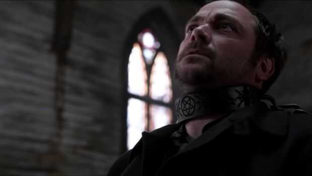 algunas fotos y capturas de escenas de SPN cuando Crowley es capturado con las cadenas del demonio