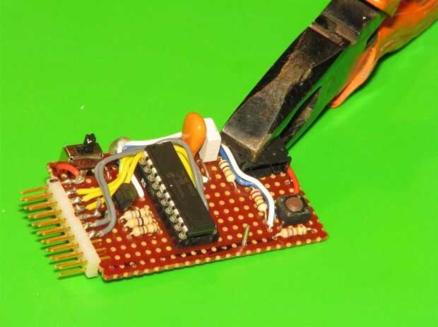 Muy a menudo estoy construyendo circuitos en placa perforada y muchos enlaces de corta alambre para las pistas del puente.  Aquí es una manera de hacer rápidamente enlaces cortos precisos.  Para más enlaces, mira mi NiftyBender.Para hacer un enlace,