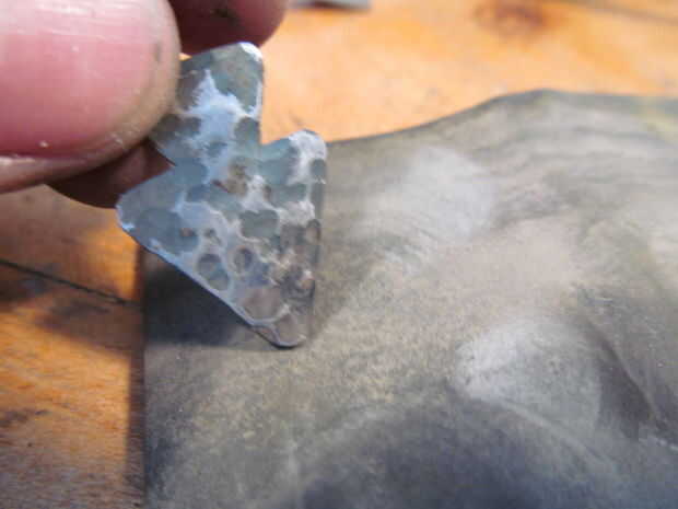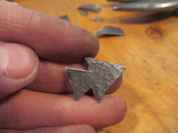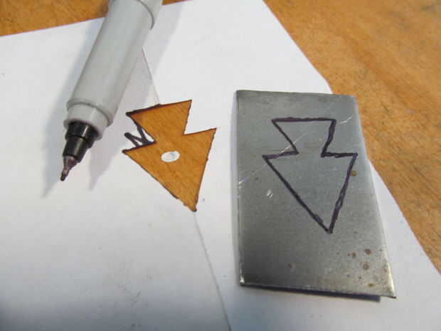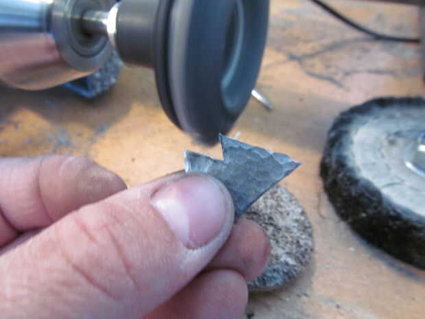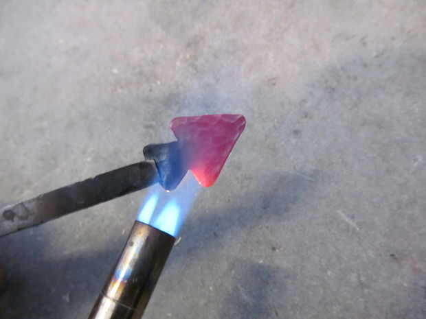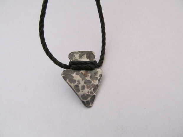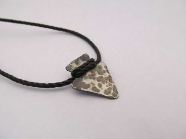 Primero corte un cuadrado pequeño de metal. Entonces utilizar el mismo método como cortar un corazón de papel, aunque en su lugar haces una punta de flecha. Trazar la imagen sobre el metal y recortarlo. Utilice un martillo de bola para el metal de la textura. Moler abajo cualquier borde filoso. Oxidan el metal con un soplete para que decolora. Utilice un trozo de papel de lija para eliminar algunas de la oxidación para resaltar los golpes de martillo. Por último usar un nudo constrictor para atarla en un pedazo de cordón de algodón.