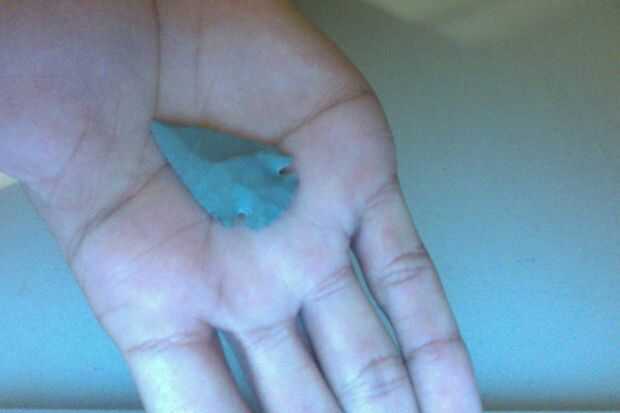 Trate de tallar la forma triangular de la flecha primero, luego las dos muescas en la parte posterior. Cuando se termina el triángulo, cincel las dos piernas largas el triángulo hacia abajo verticalmente. Esto le dará a la flecha el efecto "robusto" de ser una auténtica punta de flecha utilizada por los nativos americanos.