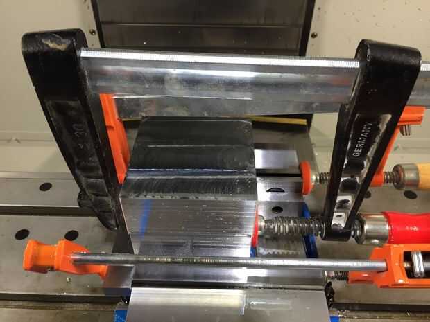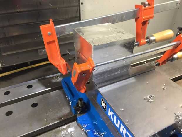 Encontrar el URL más corto, más gordo puede encontrar y afiáncela con abrazadera contra las quijadas como se indica (con el lado paralelo, no los lados con los agujeros). Las mordazas deben ser apenas firmemente sobre la pieza. No desea mover las mandíbulas que a gran distancia, pero usted desea la pieza de trabajo debe poder moverse cuando se sujete a la URL.