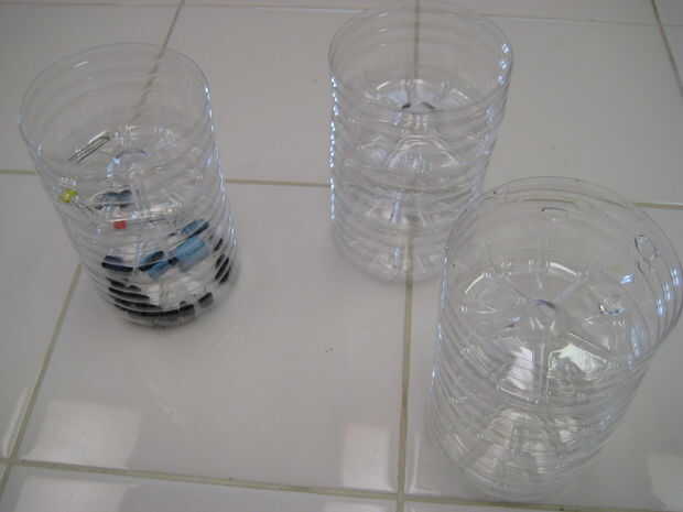 Vamos a hacer contenedores para los componentes de viejas botellas de agua. Reciclaje antes de reciclar!