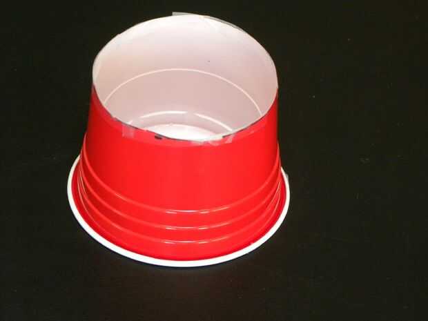 Colocar "media taza de fondo" dentro de la "Copa de mitad superior" donde la parte inferior hacia el borde superior, como muestra la imagen