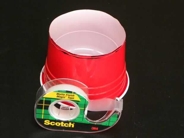 Únalos con cinta adhesiva ambas copas en el borde, con cinta a lo largo de todo el borde.