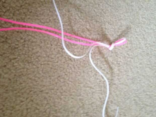 Dos piezas de cuerda paracord o lo que quieras y viejo los dos encima. Haga un nudo.