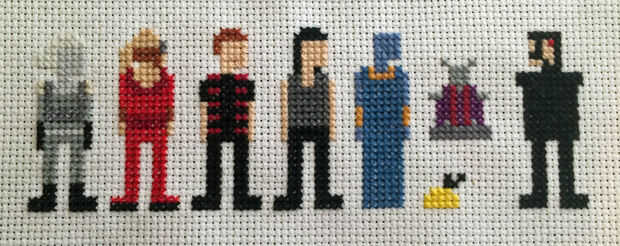 Punto de cruz patrón (en excel y forma del cuadro) con los personajes de la temporada 1 de Farscape.Paso 1: materialesPaño de Aida 14 Conde (patrón escrito para un 5 x 7" marco)Colores (número de color de seda estándar dado)** D'Argo **Piel - 738Nari