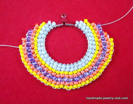 Repetir los pasos anteriores para crear otra capa de granos de la semilla. Para la capa 4, insertar el hilo de nuevo a través de los granos de la semilla y fuera el grano amarillo 2 y desde aquí repetir paso 4 para crear otra ronda de granos de la semilla. Puede crear tantas capas de granos de la semilla que te gusta en diferentes colores.