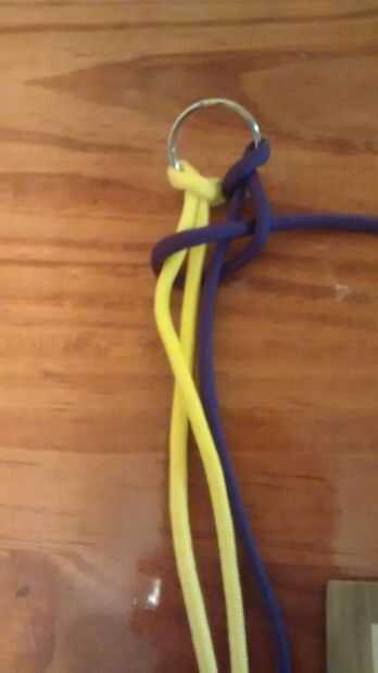 Paso 1: materiales ·2 1/2 pies de paracord o cadena similar· clave o claves·Nut, lavadora o cualquier otro objeto con un orificio de al menos 2 mm de diámetro·scissors·LighterPaso 2: a partir de Tomar un extremo y poner a través del orificio de las t