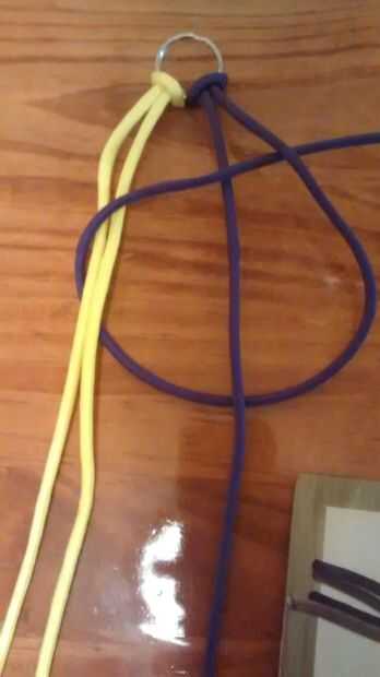 Start a la derecha tomar la más cuerda y lazo que detrás de todos los otros entonces lo enlacen en todos ellos y luego debajo el de la derecha más lejano.