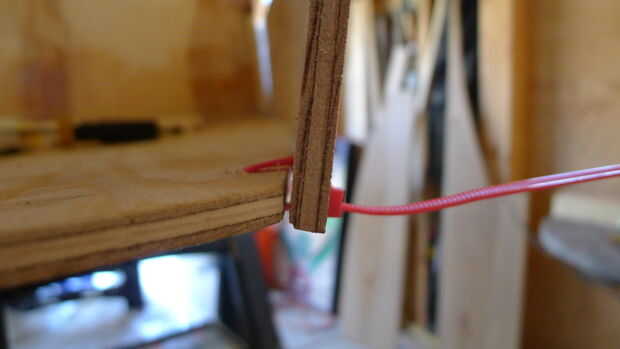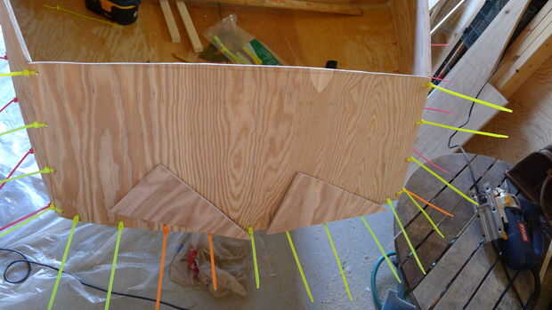 Aunque la puntada a puntada y pegamento ha sido tradicionalmente el alambre de cobre, encontrar bridas a ser mejor por varias razones. Principalmente, son fáciles de apretar y eliminar (en algunos casos), y tienen una característica de seguridad integrada en ellos el sentido de que se rompe generalmente antes de los saltos de madera en el caso de apriete excesivo. Sin embargo, cabe señalar que las ventajas del alambre de cobre que puede ser retirado totalmente de epoxi si ya cubierto en ella simplemente calentando para arriba y tirando de él hacia fuera, y también el alambre es más fuerte y normalmente más que ataduras de cables, que permite un enlace más cercano, que es especialmente útil en curvas cerradas, y un agujero pequeño perforado en el casco. Alambre de cobre tiene que cortar a la longitud, mientras que las ataduras de cables se corta y generalmente tienen que apretarse dolorosamente a mano o con unas pinzas que pueden resultar engorroso.
