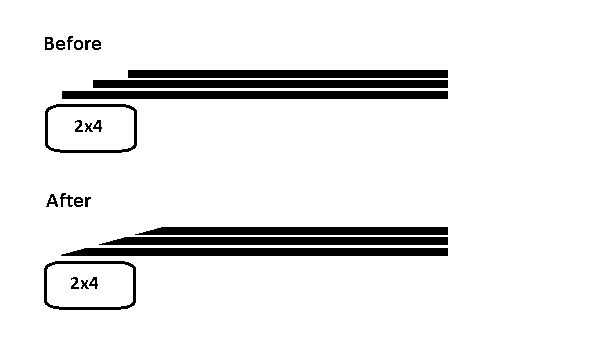 Para crear el borde, tomó una tabla de 2 x 4 y coloca un trozo de madera contrachapada en la parte superior. Luego coloqué un lado bonito de la hoja para arriba en la pila y el otro hoja bonita hacia abajo. De esta manera el lado bonito no se dañen durante el raspado y lijado. Los tableros se compensan con 2 pulgadas y luego coloqué cinta azul 2 pulgadas desde el borde de la lámina superior para avisarme que yo no debo cortar en esa parte. Utilicé una pinza C para mantener la pila de la mudanza. Entonces escofina y arena hasta una pendiente suave agradable.