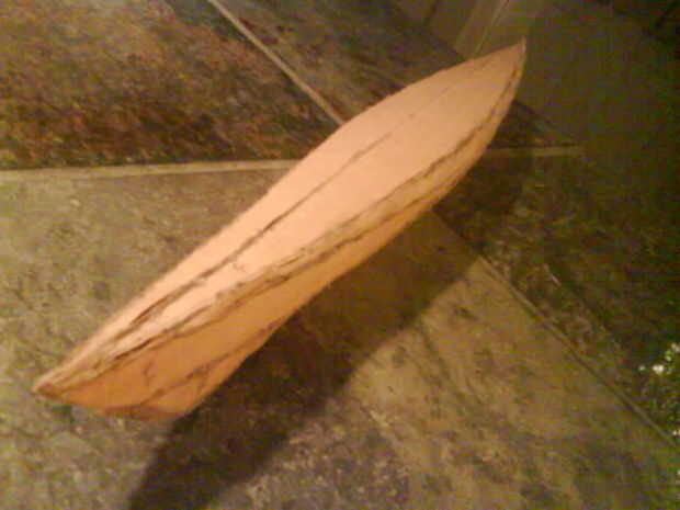 Para obtener una mejor idea de lo que mi nuevo kayak se parece y cómo se supone que encajan trazan los puntos en un pedazo de cartón. Me convierte cada pulgada en un 1/8 pulg e hizo un modelo a escala. Después de cortar las piezas usé pegamento caliente para construirlo. Esto me dio la confianza para hacerlo de verdad.