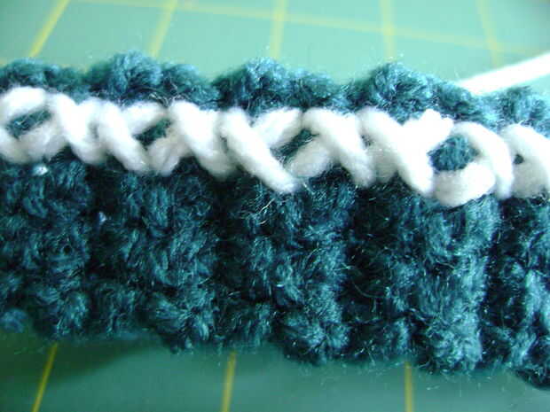 #1 - siguiendo el 'grid' puntada diagonal izquierda a derecha todo el camino en la parte superior de la pulsera.