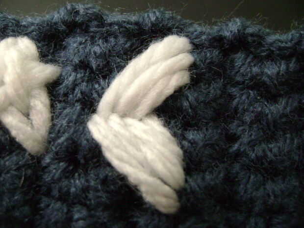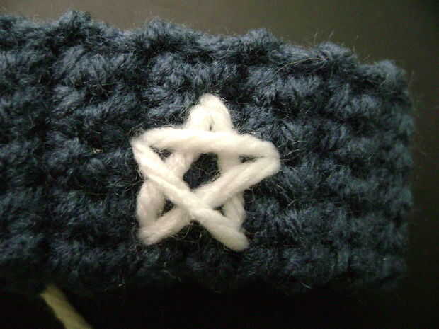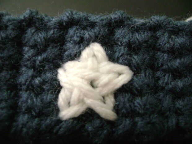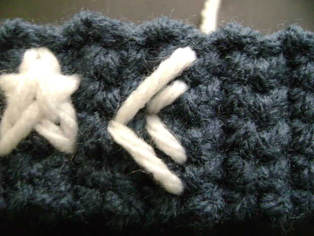Nota: Si usted mira de cerca a la estrella junto a la luna en el #3, verás que la 'envergadura' parece un poco gracioso. Descubrí que si una estrella sale como eso, necesita pasar un lado de la puntada de un agujero en la red. Ejemplo: hice el 'brazo' en la misma fila de cuadrícula que la 'pierna', pero necesario para moverlo sobre una fila más.