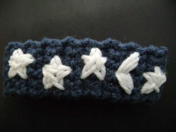 #5 - seguir haciendo estrellas toda la pulsera. Este es el lado izquierdo acabado del que hice.