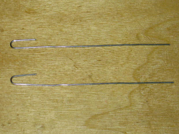 Tomar tus 2 clips y straiten hacia fuera. No es necesario enderezar la pieza completa. Sólo usaremos unos 3/4 de la clip por el de prueba. Si desea puede utilizar sólo 1 clip y dividirlo entre sus 2 cables de prueba. You ' r a la izquierda con menos vueltas alrededor de la cabeza para sujetar la punta de la sonda en posición.