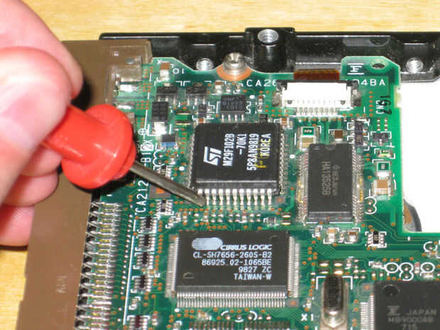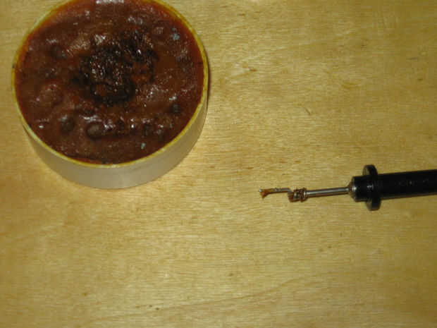 Mueva la bobina hasta el final de la punta de prueba y la parte superior hacia fuera, en línea con la punta de prueba de la curva. Use una buena cantidad de flujo en todo la parte en espiral de su punta nueva. Luego usar una plancha de 40W de la soldadura de la punta a la punta de prueba.