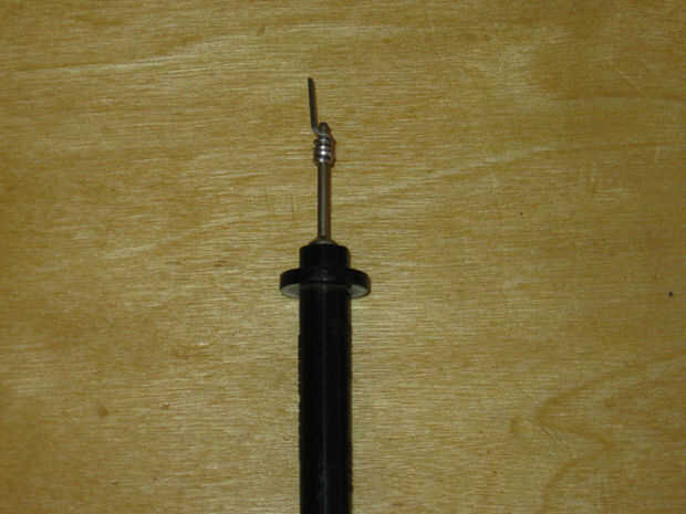 Mida aproximadamente 1/2" hacia abajo y coloque una curva de 90 grados en el cable. Coloque la curva de 90 grados del alambre en el extremo de la punta de prueba y empezar a envolver el extremo más largo alrededor de la cabeza lo mas ajustado posible. Alicate para evitar que cada lazo firmemente a la punta de prueba. Después de 4 o 5 vueltas puede recortar el pedazo sobrante de alambre del cable de. Si tu utilizando sólo la mitad del clip por plomo luego enróllelo hasta que acaba el alambre.