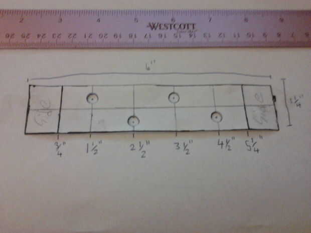 usar la imagen de referencia. recordar a los "lados" de la etiqueta los agujeros de centrado (o próxima a centrada) desde la mitad de la plantilla Use una perforadora para hacer agujeros en la plantilla para marcar donde uñas tiene que ir