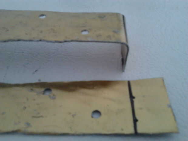 fijar la pieza en el borde de algo sólido con una esquina aguda como el final de un 2 x 4 y la abrazadera hacia abajo como en la imagen. golpee el "lado" de la pieza con un martillo como en la imagen, para doblar hacia abajo. (como se muestra)