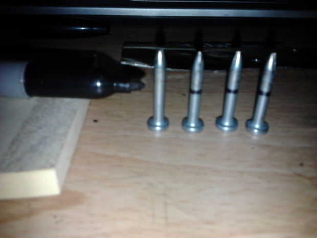 prueba de ajuste de su clavo en los agujeros que ha perforado previamente. quiere ir todo el camino a través del metal para que la cabeza del clavo está en contra de la tira de metal. Si no encajan bien, hacer los agujeros ligeramente mayor con taladro o dremel