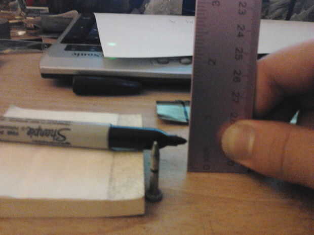 despedir a sharpie con tapa en post-it almohadilla andadd o quitar capas de notas hasta que la punta de las medidas de sharpie 1/2 pulg de altura de trabajo de la superficie (como en la imagen, con uñas antes y después) y toque la uña que mientras gira el clavo y con sharpie en lugar