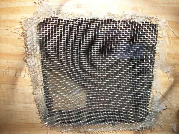 Lo primero vamos a el de unir es hacer Fondo a la Base. Debemos pasar en este momento el cable de alimentación por la guardabarros del Fondo. Después pegamos la malla en la abertura de ventilación de la pieza B y la fijamos a la base.