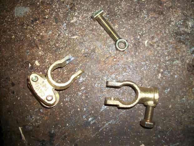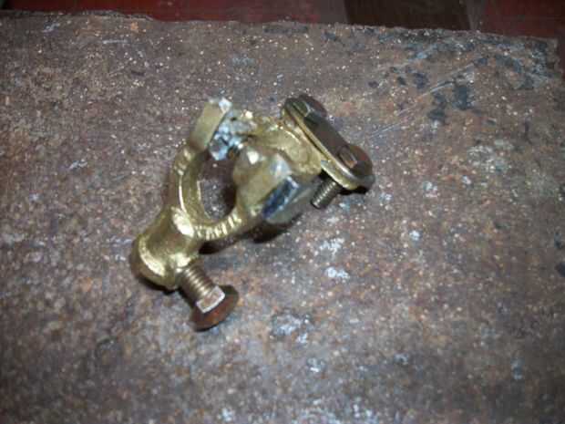 El primer paso es el más difícil. Cada brazo usará dos terminales para batería. Se deben unir dos terminales de forma una quede dentro de la otra en un ángulo de 90 °. (ver imagen)