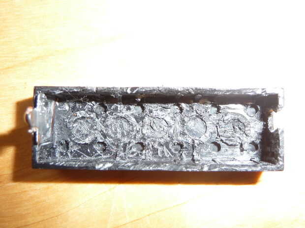 El ladrillo de la tripa. Puede utilizar una Dremel, pero puesto que no tengo que utilizar mi cuchillo. Tienes que poner dos agujeros en el ladrillo (uno para el laser) y otro para el botón