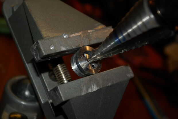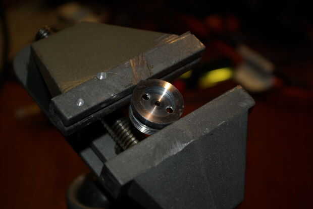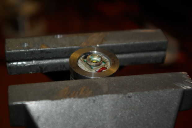 Una vez atornillada que puede se suelde el LED y retírela. En el otro lado (donde toca la batería) es necesario quitar la tarjeta controladora. Una vez que se ha eliminado es fácil perfore la píldora a dar espacio para el conductor del laser.