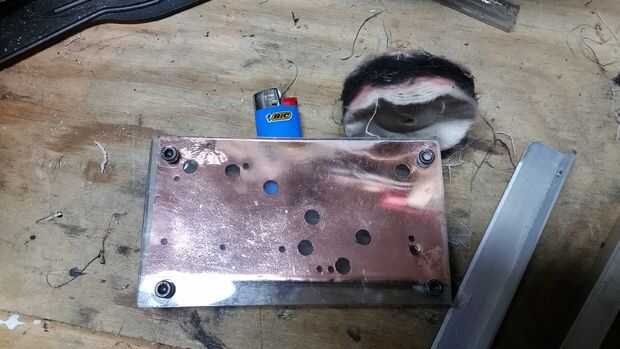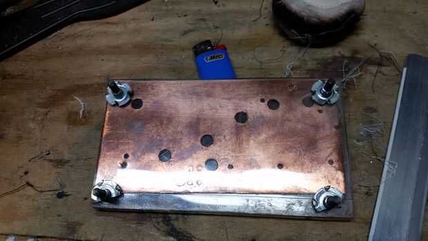 Encajona el cobre pulido en lexan, hizo un montaje cortado y montado los pies y tuvo que probar :)