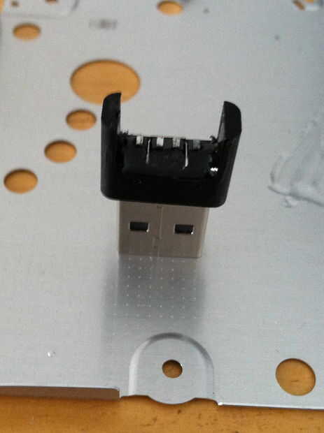 (5) tienes que usar algunos epoxy para pegar el conector USB en su lugar (Asegúrese de no obtener epoxy en las clavijas del conector, si, utiliza un removedor de esmalte de uñas para limpiar terminales)