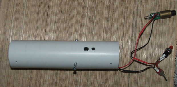 Luego la batería y el disco se introducen en el tubo de PVC hasta que el disco está en línea con la media fila de agujeros. El disco se fija en su lugar utilizando sujetadores métricos. En la segunda imagen a continuación, puedes ver donde he dejado un sujetador al lado.