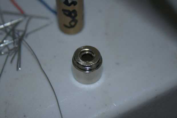 El tipo de módulo en la foto es de cromo plateado. Si has probado a soldar como-es, descubres cuán bien se pegue la soldadura para cromo, o más bien cómo no lo hace. Papel de lija de grano 120 y 220 se emplea para exponer un poco latón desnudo. Luego consigue lavar bien dentro y por fuera con agua y jabón y luego lavarlo con isopropanol para eliminar los restos de grano y aceites de residuo.