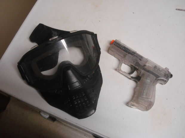 Poner en unas gafas de seguridad, por razones de seguridad. Los dardos puntiagudos no tanto como problemas porque se pegan en las cosas, pero los dardos explosivos rebote como un loco y tienen una gran habilidad para romper cosas.