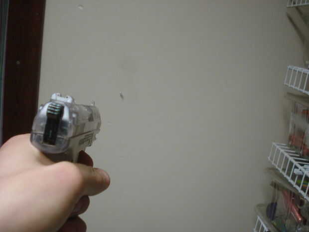 Amartille el arma, apuntar al blanco seguro y fuego. Los dardos puntiagudos casi siempre volar recto, pero los dardos explosivos llegará a veces a un ángulo extraño, caída o no explotar (algunos ajuste requerido).