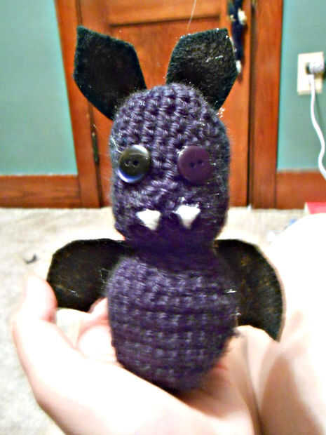 Perdón por tal una pausa larga, pero aquí es un murciélago pequeño yo azotado para arriba. Es un proyecto super rápido, le había hecho en menos de dos horas y eso fue incluso con retroceso. Lo hice, lamentablemente da mina dos colores ligeramente diferentes de botones. Yo se ser pintura sobre cuando tengo la pintura para hacerlo. Hasta que puedo actualizar la foto, imaginaros con que ojos.