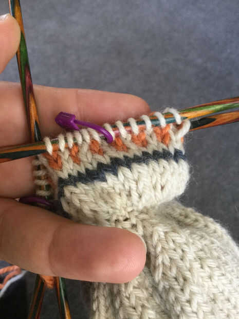 Punto blanco, 1 punto 1 naranja - continúe alternando puntadas en color naranja y blanco (a partir del blanco) 2 vueltas completas.