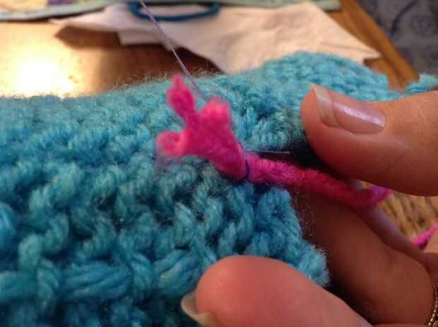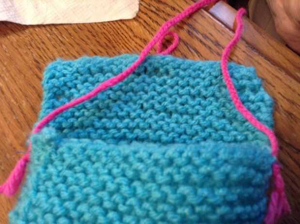 Adentro hacia afuera de la bolsa. Obtener su aguja e hilo de rosca y coloque el extremo de la manija de la bolsa (arriba a la derecha a lo largo de la costura). Coser/Stich el mango en la bolsa. Ahora hacer lo mismo en el lado izquierdo.