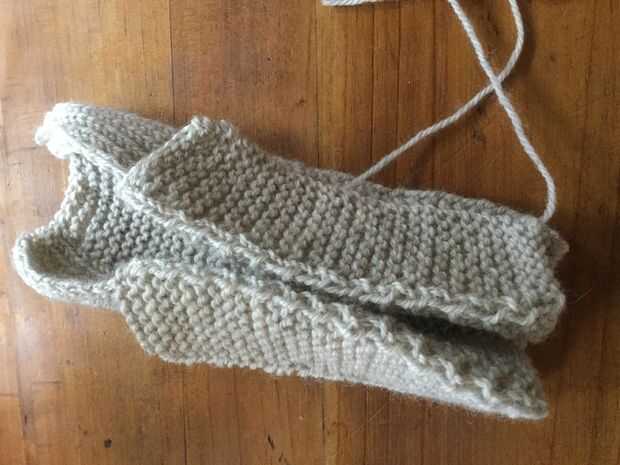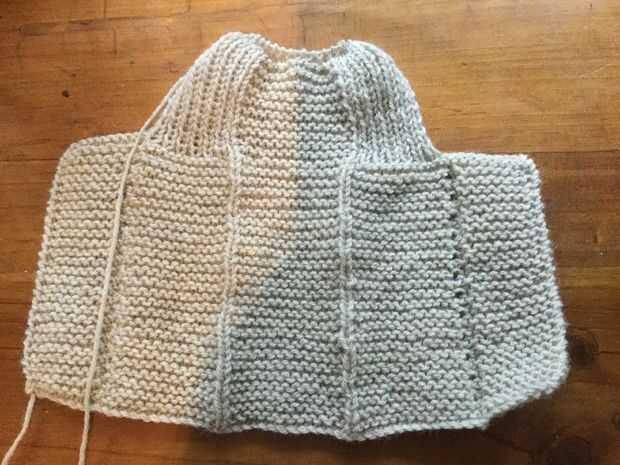 Para todos los tamaños, tejer 2 juntos durante toda la hilera. Ahora tienes 16 (18, 19, 21) puntos restantes. Por medio de tamaños y extra grande, hay un número impar de puntos antes de comenzar esta fila decreciente, por lo que la última puntada va punto por separado.