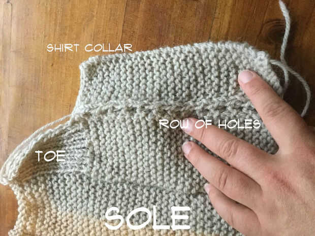 Corte el hilado con unos 30cm de cola. La cola a través de los restantes puntos del hilo de rosca y tire firmemente. Use esta cola para coser la sección acanalada del dedo del pie.