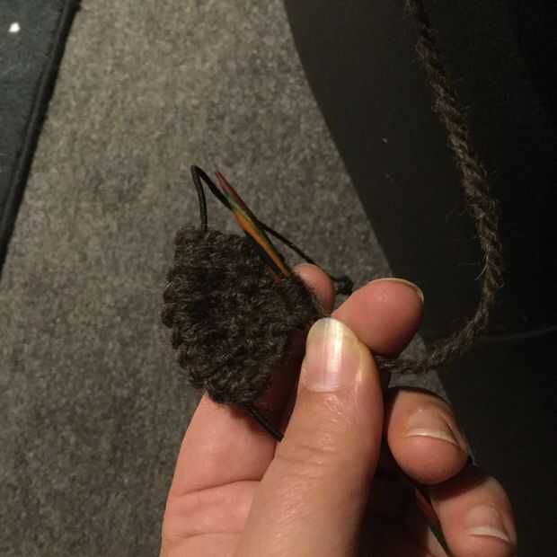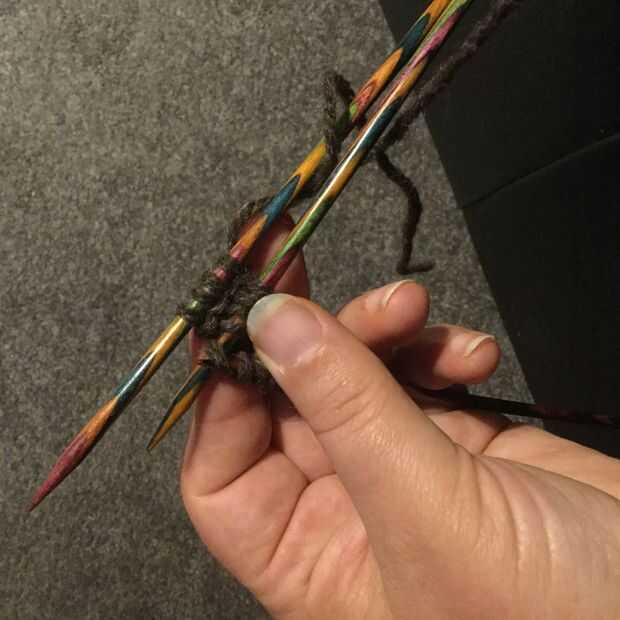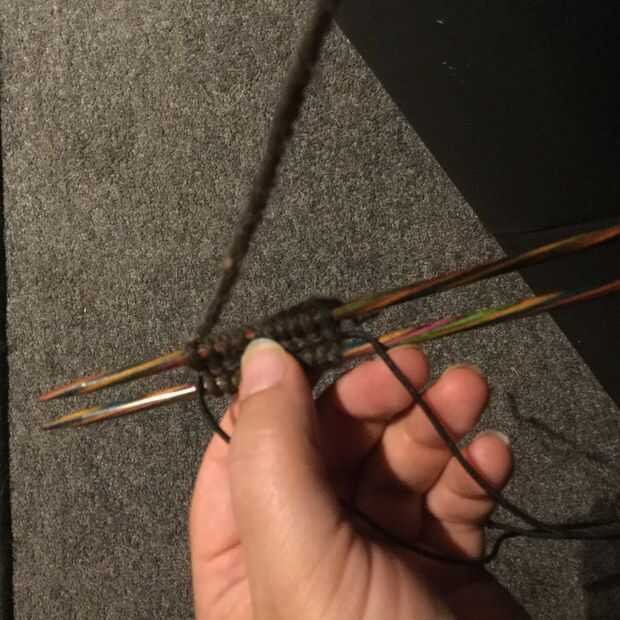 En la primera hilera tejer cuidadosamente en la parte delantera y trasera de cada puntada, colocar la parte delantera tejer puntada en una doble aguja puntiaguda y la parte posterior de punto puntada en otro. Ahora tienes 3 agujas en uso. Colocar el elástico fino entre estas agujas y manténgalo apretado. 1 rotación de dos agujas de punto. Plegar el tejido para que el elástico está atrapado entre las 2 agujas y el elenco en la costura. Sujetando ambas agujas, tejer una puntada de aguja, como haces una aguja 3 atar, pero no vinculan a fuera de los puntos de sutura. Ahora tienes punto regular con el elástico atrapado dentro de una costura de punto.