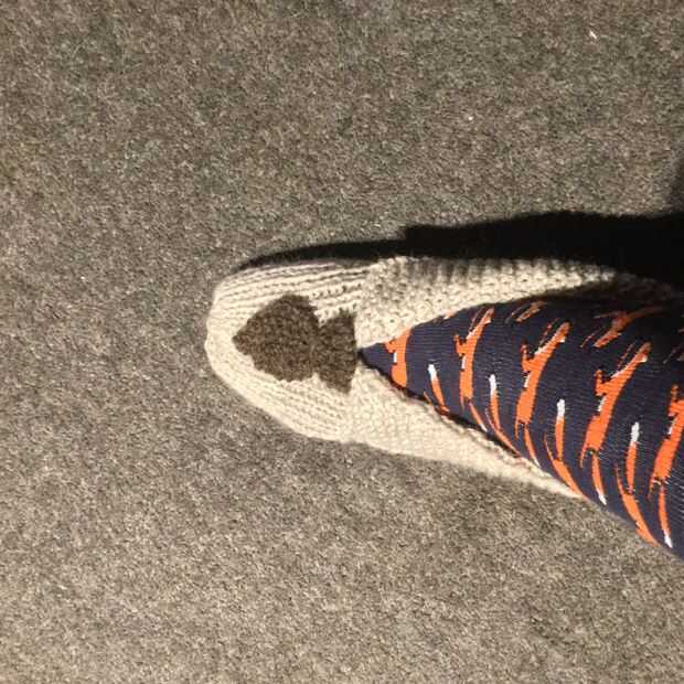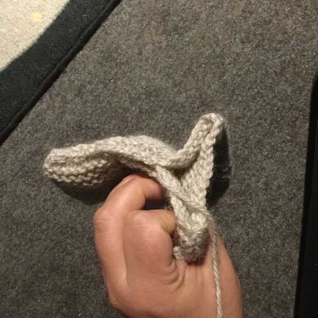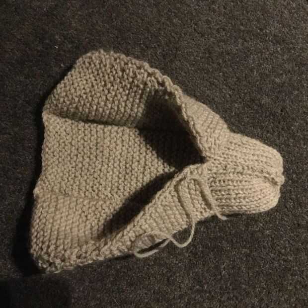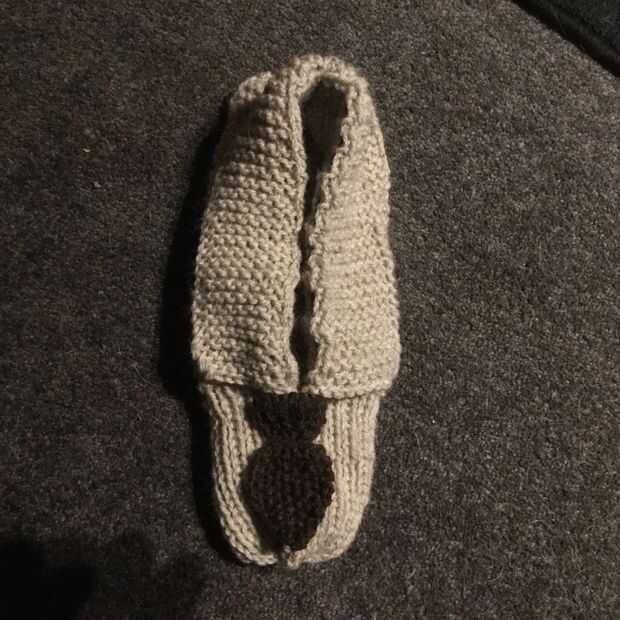 En la parte posterior de cada zapatilla, doble el cuello hacia arriba y coser hasta a medio camino por la parte trasera. Doble con cuidado la parte posterior como se muestra en las imágenes, para crear el talón trasero. Coser esta perfectamente.
