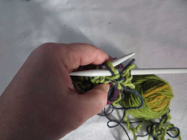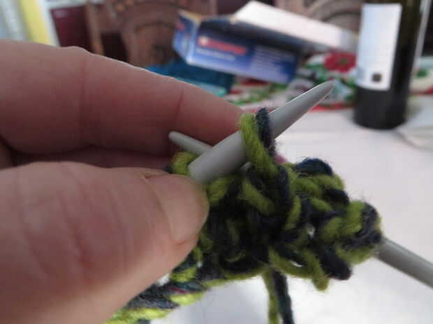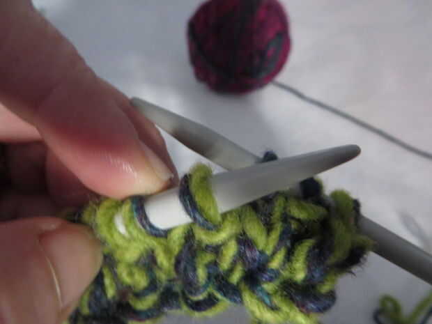 Al iniciar la fila 2, usted será tejer sobre una puntada que ha purled sólo como la última puntada de la primera fila. Que es correcto y que cómo las formas de patrón: un punto que ha sido en la primera fila, es purled en el segundo y tejer otra vez en el 3er. La puntada costilla crea un buen estiramiento en el tejido y quede plana. (es decir, no de rollo hacia adentro)