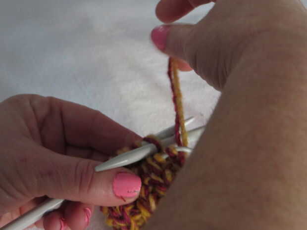 * Quiere evitar tener un lazo de lana colgando apenas, pero si tira demasiado apretado la lana, resulta muy difícil completar la 2ª parte de la fila!