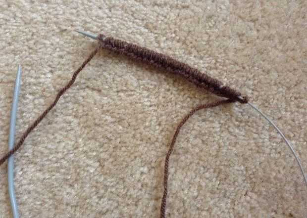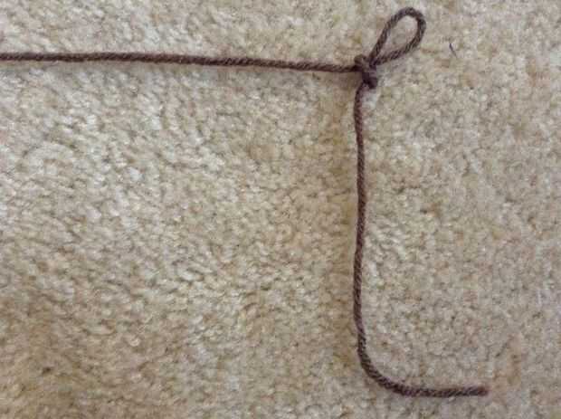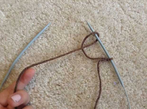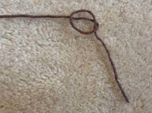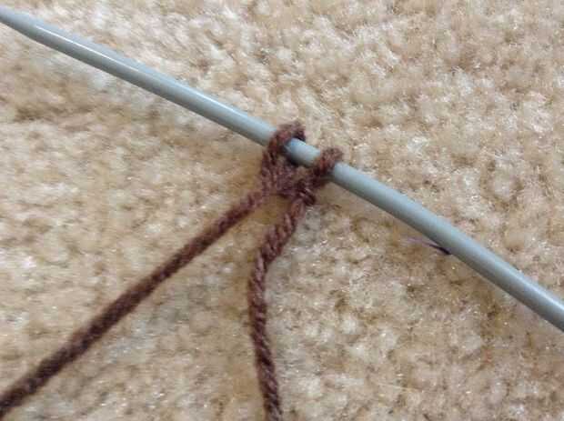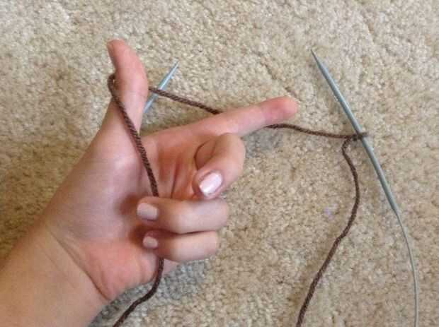 Fundido el hilo como un arma de fuego y envolviéndola alrededor de su dedo pulgar y el dedo índice. Coge la cuerda en el dedo pulgar y debe crear un lazo alrededor de la aguja como se muestra.
