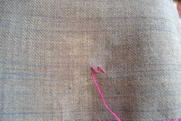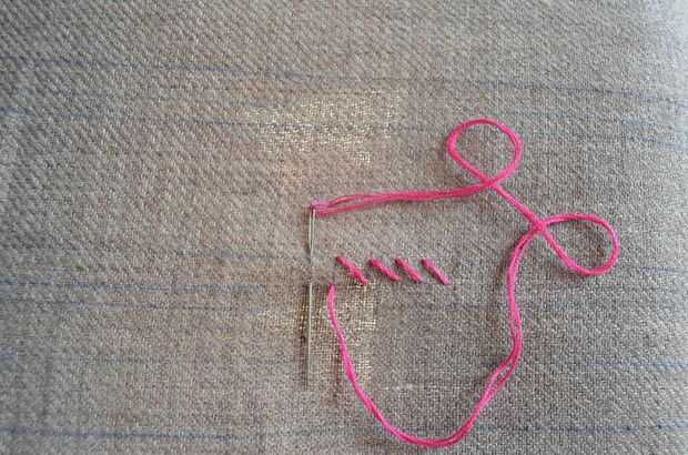 Continúe con el paso anterior y hacer muchos cruces mitad. Como la tela no tiene puntos marcados para cada puntada, ser un poco cuidadoso y tratar de mantener líneas paralelas tanto como sea posible. Con un poco de práctica inicial esto no debería ser difícil.