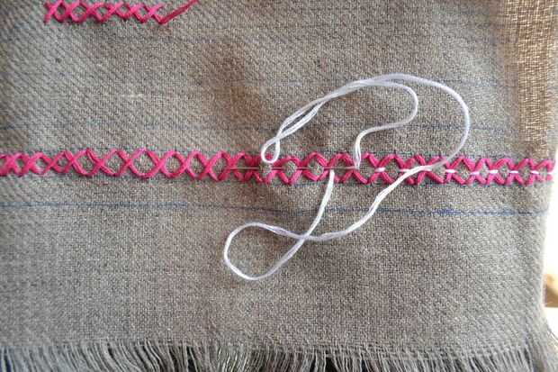 Después de hecho el diseño de Cruz, añadir contraste añadiendo una línea de funcionamiento puntadas con un hilo de color diferente.